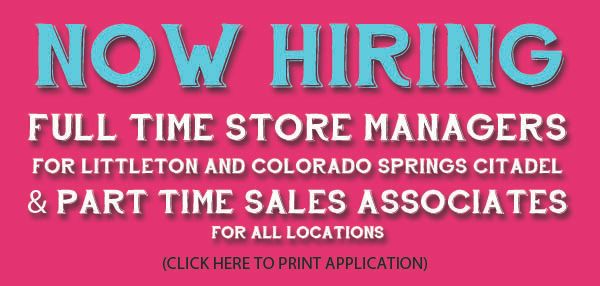 Plato's Closet in Littleton is hiring at for part time sales associates. Locations in Colorado Springs, Fort Collins, and Cheyenne, WY are also hiring.