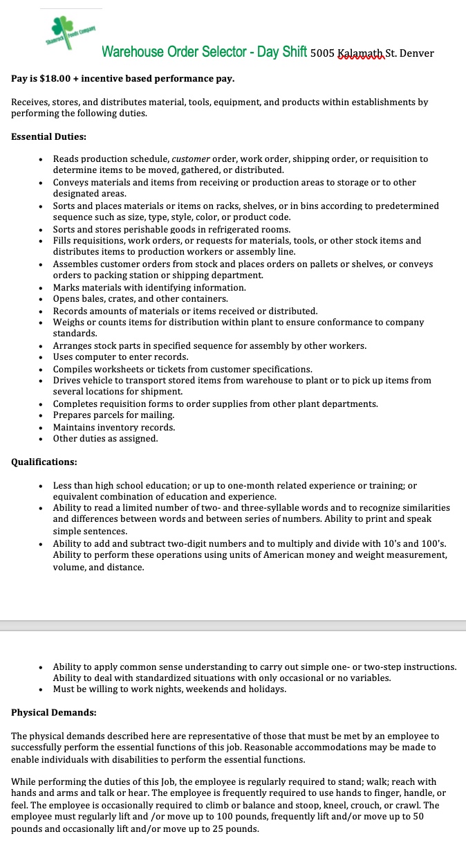Warehouse Order Selector-Day Shift @ Shamrock Foods Company in Denver